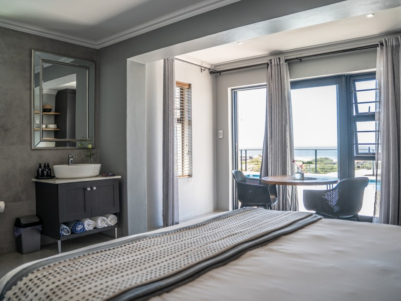 This well-appointed studio is ideal for overnight or weekend visits at our guesthouse in Jeffreys Bay. Studio 2 offers comfort, convenience, and a postcard-perfect view. Compact but beautifully designed, it’s an excellent base for exploring Jeffreys Bay and surrounds.