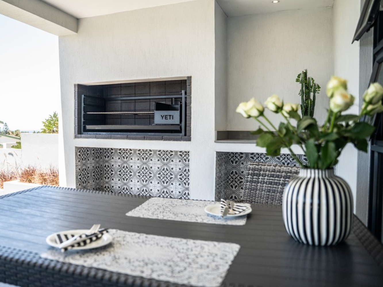 - Private covered patio with outdoor seating